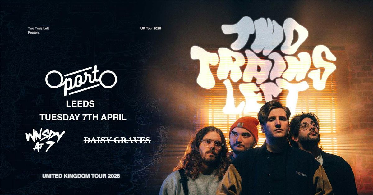 TWO TRAINS LEFT are redefining modern pop punk. Since their formation in Paris, the band has been crafting heartfelt songs that blend nostalgic energy with a fresh perspective. With emotionally driven lyrics, catchy melodies, and explosive live performances, they’ve made a name for themselves across France and beyond touring with Chunk! No, Captain Chunk!, performing at MVRKSFEST, and opening for international acts like Neck Deep or Four Year Strong. Following the release of their debut album Probably For Nothing in 2024, Two Trains Left are ready to take their sound to the next level, louder, bolder, and more honest than ever.support from Wndsy At 7 & Daisy Graves