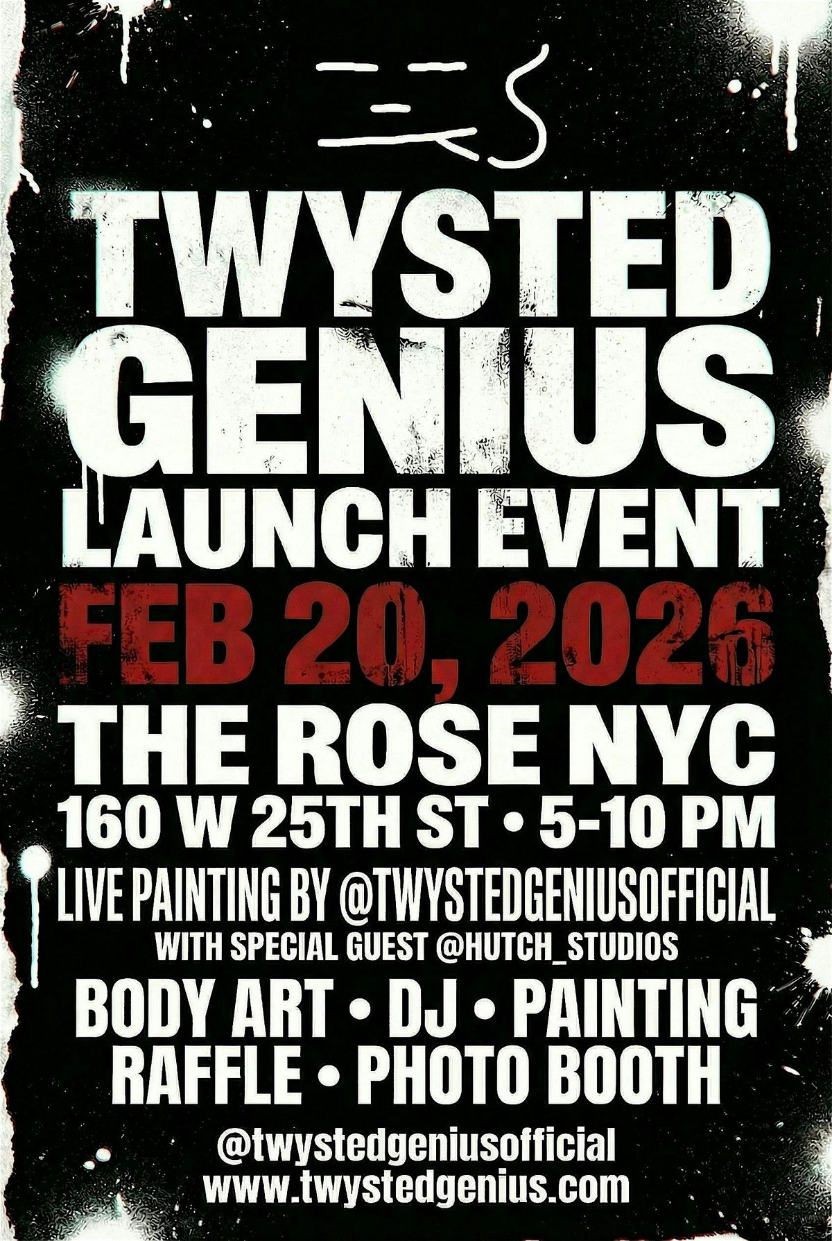 Come hang for the official Twysted Genius brand launch — a free, come-as-you-are night celebrating art, fashion, and creative chaos. Expect live painting, body painting, a DJ, a photo booth, snacks, and very good vibes.