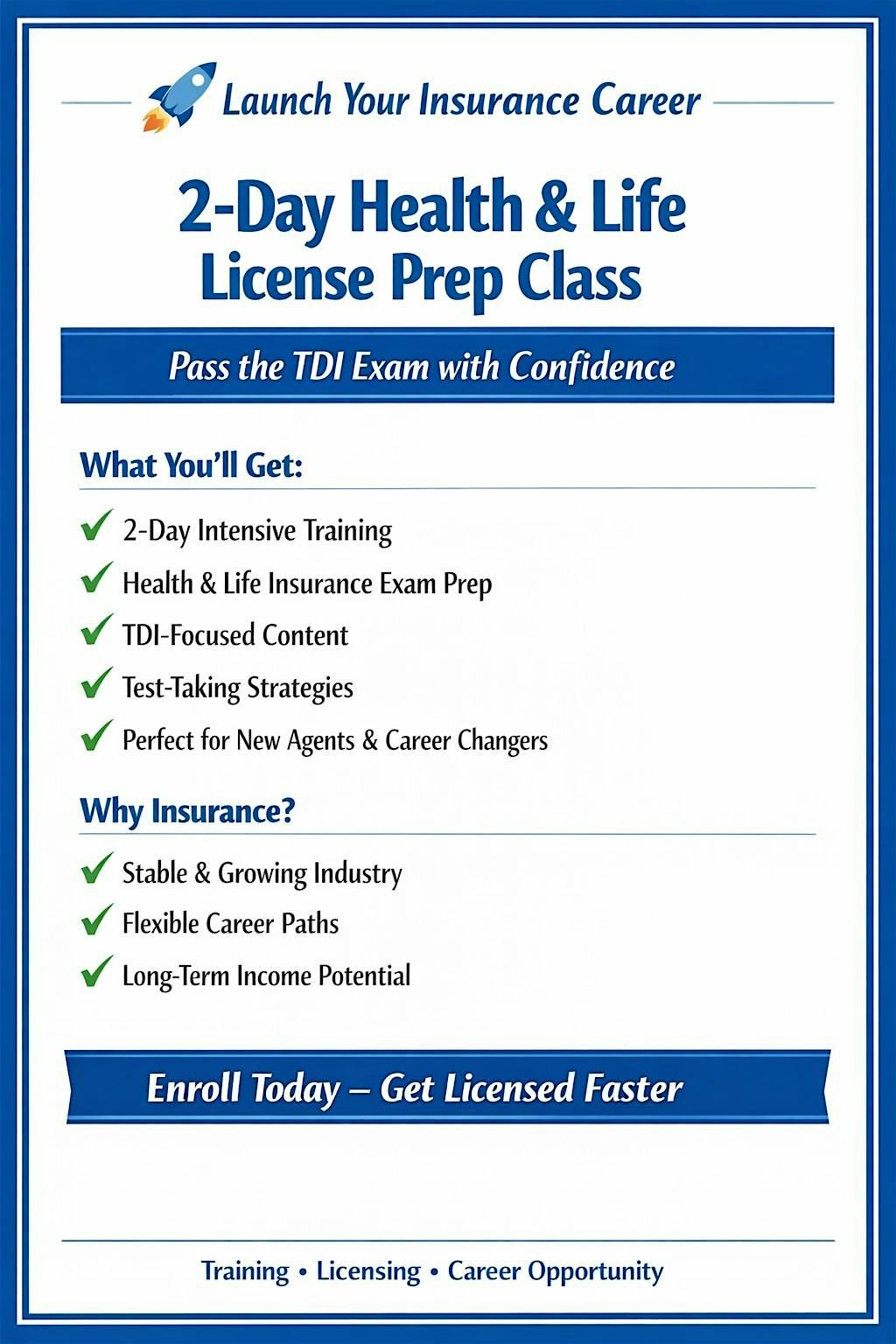 TX Health & Life Insurance License Opportunity!! 2 Day Class