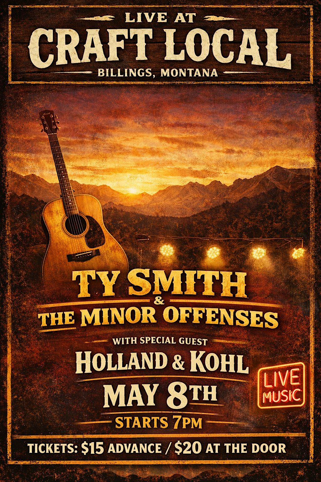 Ty Smith & The Minor Offenses perform live at Craft Local on May 8, 2026. Opening at 7pm, one Billings' favorite duo's, Holland & Kohl.