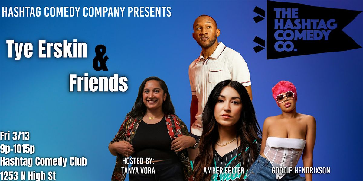 Tye Erskin & Friends is back Thursday 3/13 at 9PM at Hashtag Comedy Club — and this one is stacked.
