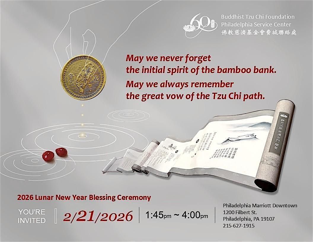 The Buddhist Tzu Chi Foundation Philadelphia Service Center will be holding its annual Lunar New Year Blessing Ceremony on Saturday, 2/21/2026 @1:45 PM at the Philadelphia Marriott Downtown (see attached flyer).