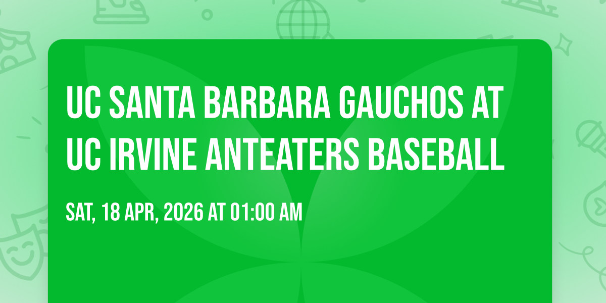 π Location: 33.6405, -117.844π Welcome to UC Santa Barbara Gauchos at UC Irvine Anteaters Baseball, where the impossible becomes possible and dreams take flight! ποΈ Join us at Anteater Ballpark in the heart of Irvine, CA for an event that will redefine your expectations. π On April 19th, 2026 at 08:00 PM, witness the transformation of space and time into something truly magical. β¨ It's a curated experience combining the best of innovation, entertainment, and community spirit, creating moments that will be remembered for years to come. Whether you're a first-time visitor or a seasoned enthusiast, prepare to be amazed. π Book now to ensure your place in this unforgettable experience!