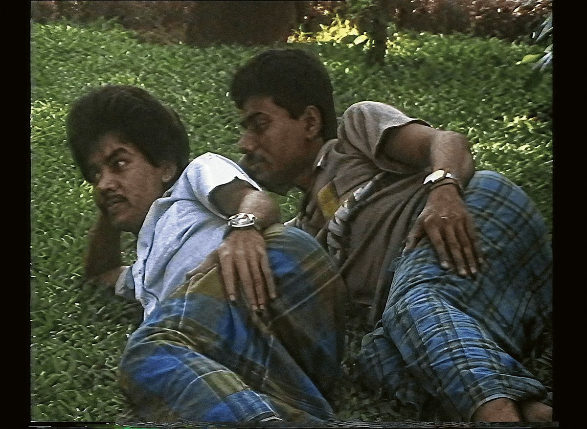 Made in memory of Kalbinder Kaur Hayre, a young Indian woman killed in 1985 in a racist attack in England, Sari Red eloquently examines the effect of the ever-present threat of violence upon the lives of Asian women in both private and public spheres. In this moving visual poem, the title refers to red, the colour of blood spilt and the red of the sari, symbolizing sensuality and intimacy between Asian women.