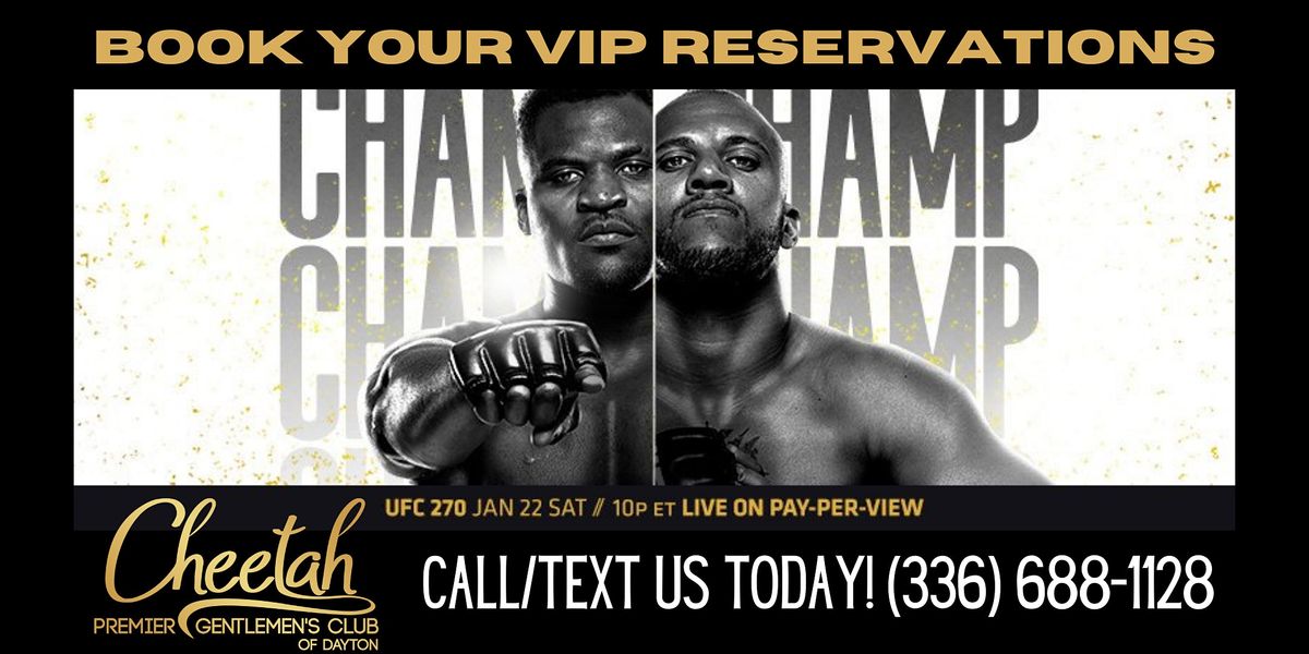 Come watch the UFC 270 fight between Ngannou and Gane at Cheetah Premier Gentlemen's Club of Dayton!