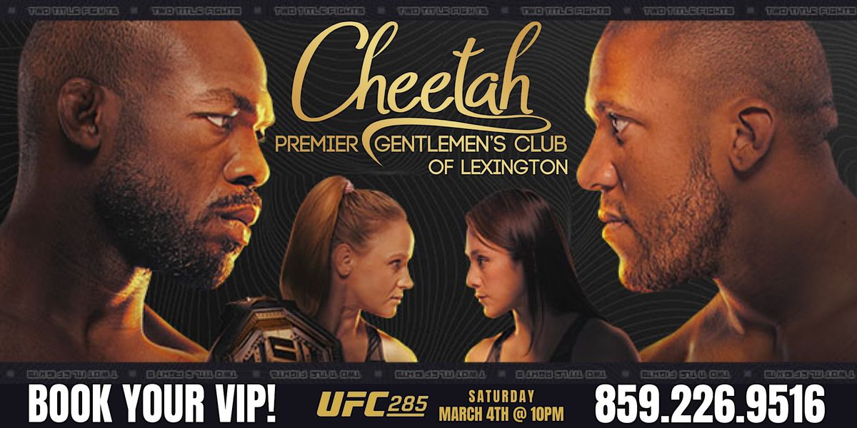 Join us at Cheetah Premier Gentlemen's Club of Lexington as the industry icon, Jon Jones, breaks his three year absence and joins Ciryl Gane for UFC 285:The UFC Heavyweight Championship Title!!