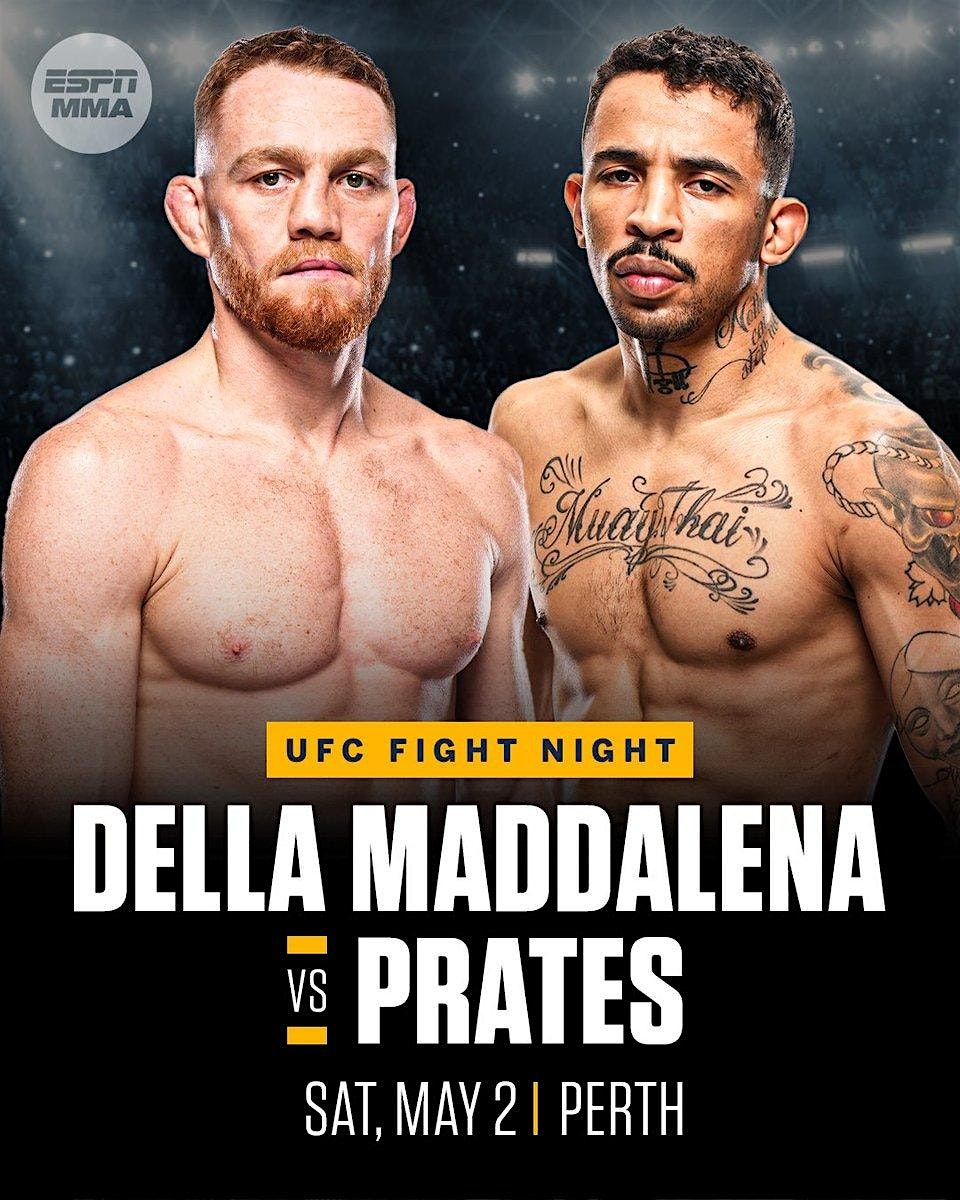 Welcome to the UFC Fight Night: Della Maddalena vs. Prates Join us on Sat MAY 2ND at 7:00 PM at Madd Hatter Hoboken for an epic night of fights. Get ready to cheer on your favorite fighters and enjoy the thrill of the octagon with fellow UFC fans. Don't miss out on the action - mark your calendars and come ready to have a great time!