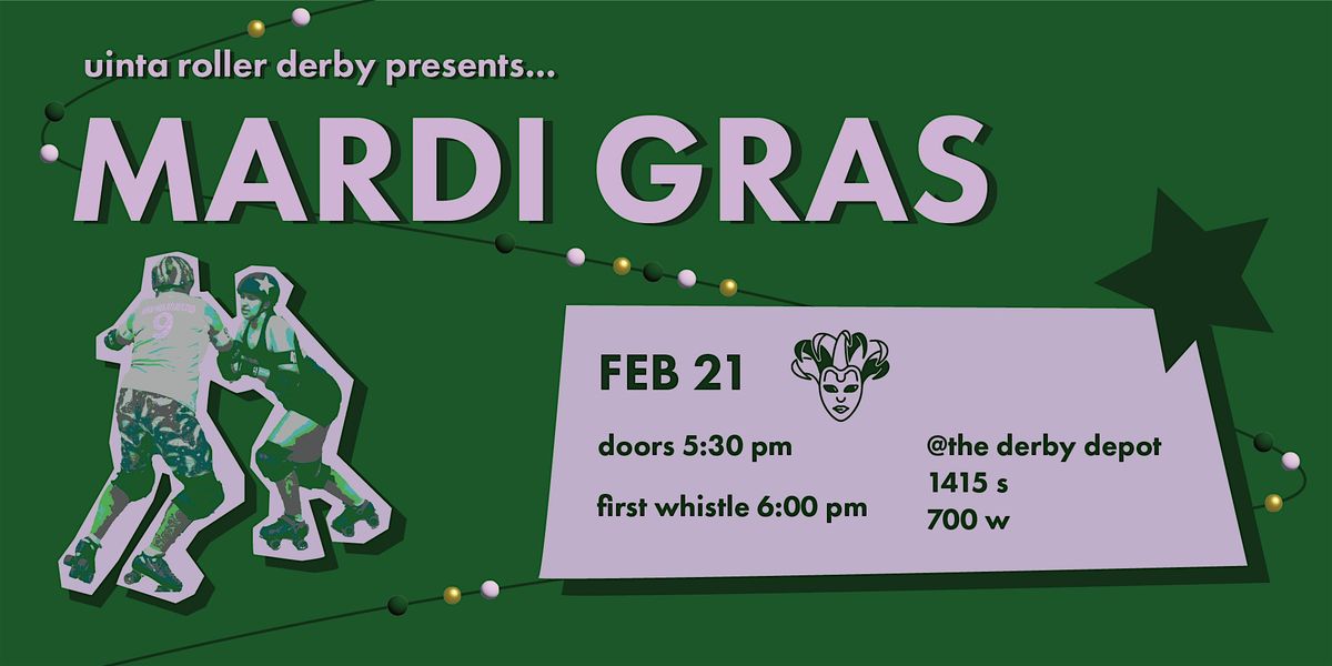 Get ready for a hard hitting, glittery costume good time with Uinta Roller Derby's Mardi Gras Home Team Bout. We are ready to get back into action and back on the track. Come celebrate with us!