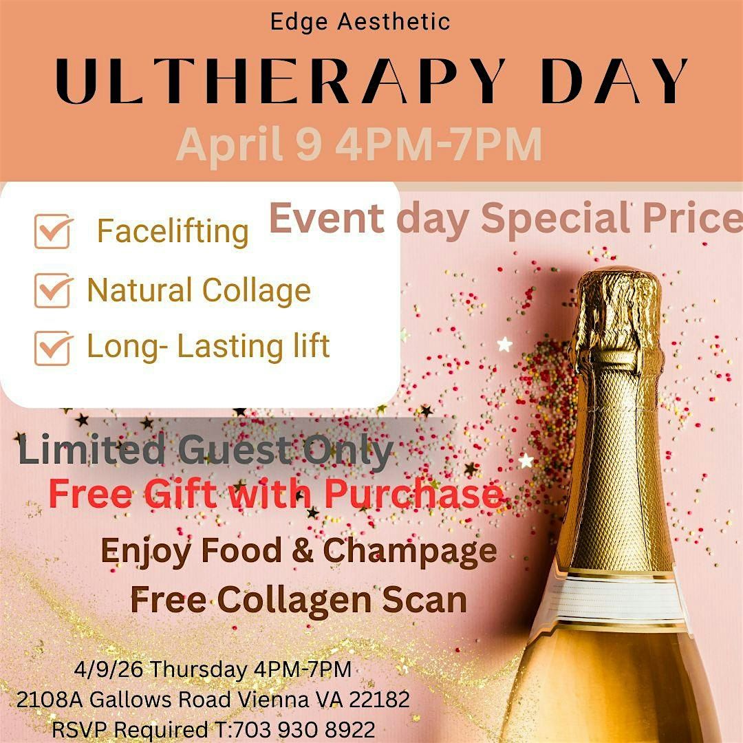 Ultherapy Prime day, Event day special price with FREE Collagen Scan, Enjoy Food and Champane, Ultherpy helps facelifting with lasting