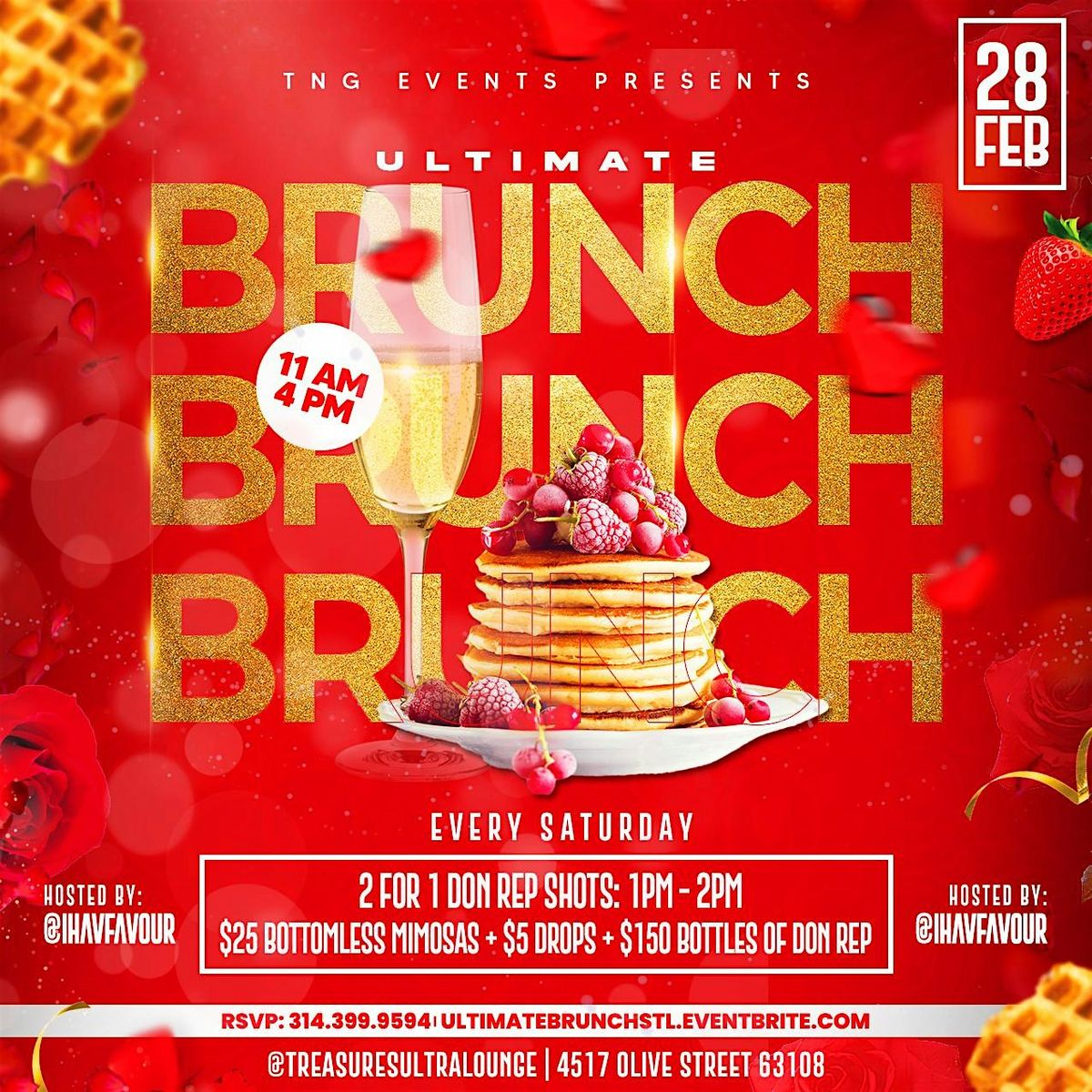 TNG Events presents the Ultimate Brunch experience at Treasures Ultra Lounge — a high-energy, no-cover brunch designed for food lovers, vibe chasers, and grown-and-sexy crowds who want more than just eggs and mimosas.