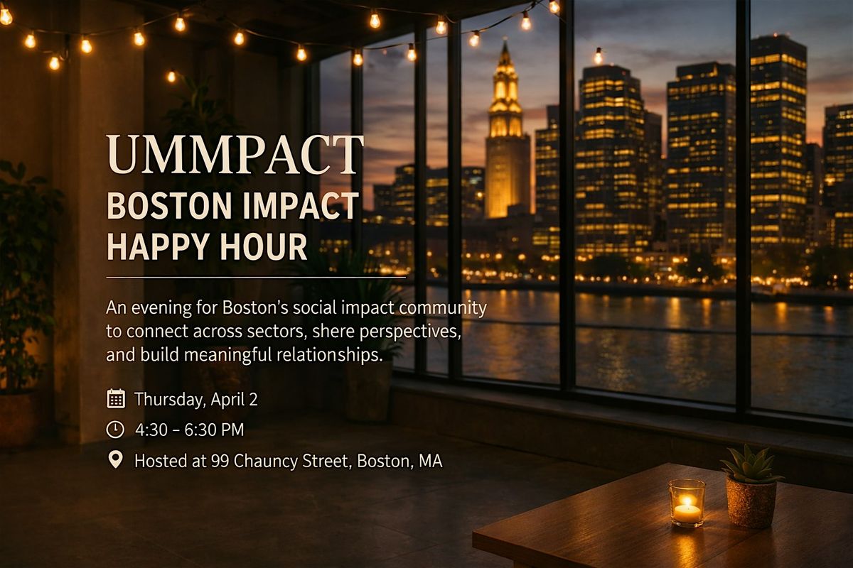 Boston is an exceptional hub for social impact work, spanning sustainable finance, impact investing, philanthropy, social entrepreneurship, academia, and more. Yet for a city full of people doing this work, there are surprisingly few informal, cross-sector spaces to simply connect. UmmPact was created to fill that gap.