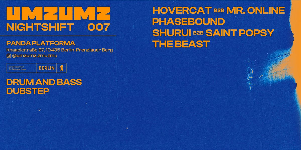 Verwurzelt im Underground, haben sie gemeinsam mit ihren Collab-Partnern als UMZUMZ NIGHTSHIFT ein Line-up kuratiert, das sowohl lokale Energie als auch grenzüberschreitende DJ-Kollaborationen in den Vordergrund stellt. Diese Ausgabe bringt einen dynamischen Mix aus Artists zusammen — darunter herausragende lokale Namen und spontane B2B-Sets zwischen UMZ UMZ, Mitgliedern der Fractured Crew, der Underground-Radioplattform CURSED und dem aufstrebenden Label WOBBLA Records.