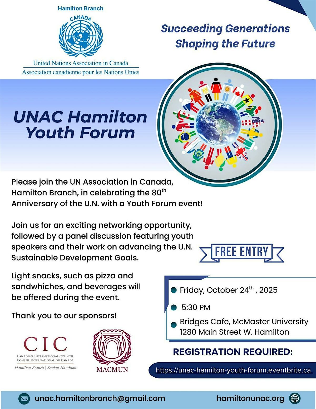 The United Nations Association in Canada (UNAC) Hamilton Branch invites you to join a gathering of emerging leaders, professionals, and community stakeholders to mark the 80th Anniversary of the United Nations.
