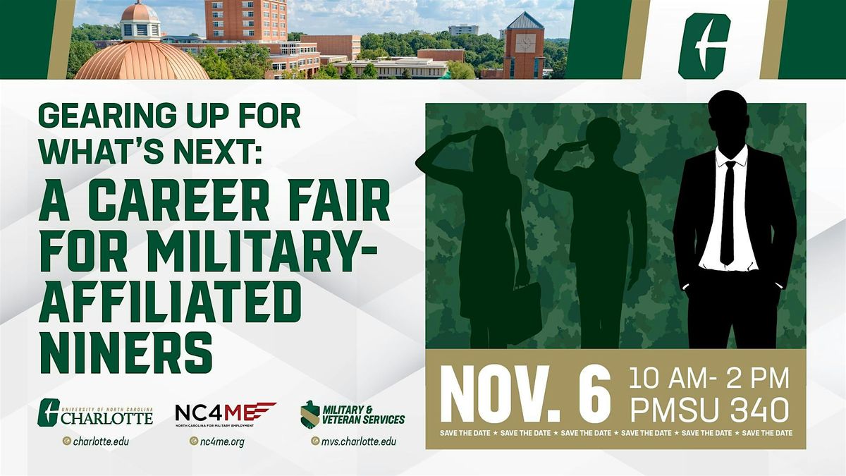 NC4ME has partnered with UNC - Charlotte to bring you the Gearing Up for What's Next Career Fair. This event will connect transitioning service members, veterans, and military spouses with employers who are actively hiring across North Carolina.