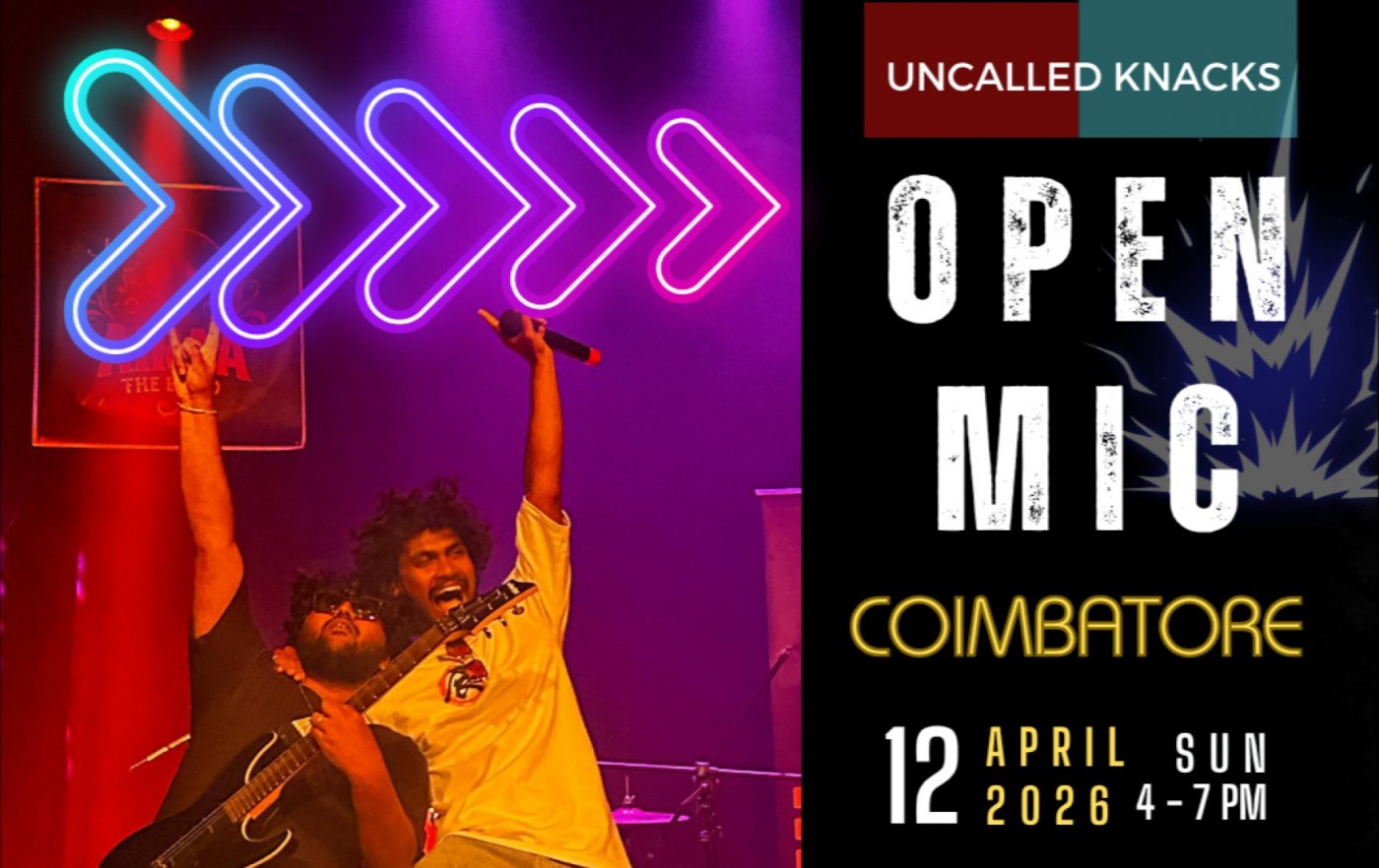 New stage. New voices. Same Uncalled Knacks energy. ๐ฅ Open Mic at Coimbatore