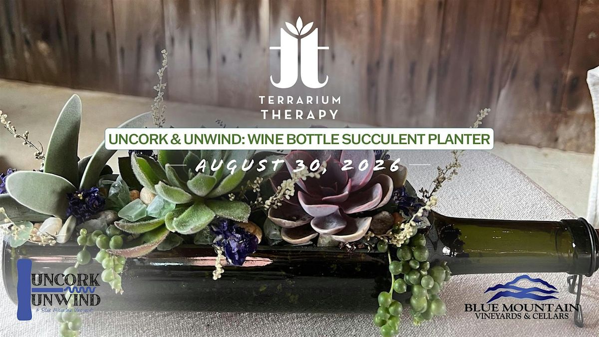 Spend your afternoon at Blue Mountain Vineyard and Cellars creating something beautiful and learning something new with Terrarium Therapy. This wine bottle succulent planter makes a beautiful, up-cycled, statement piece for your home that can be enjoyed for years to come.