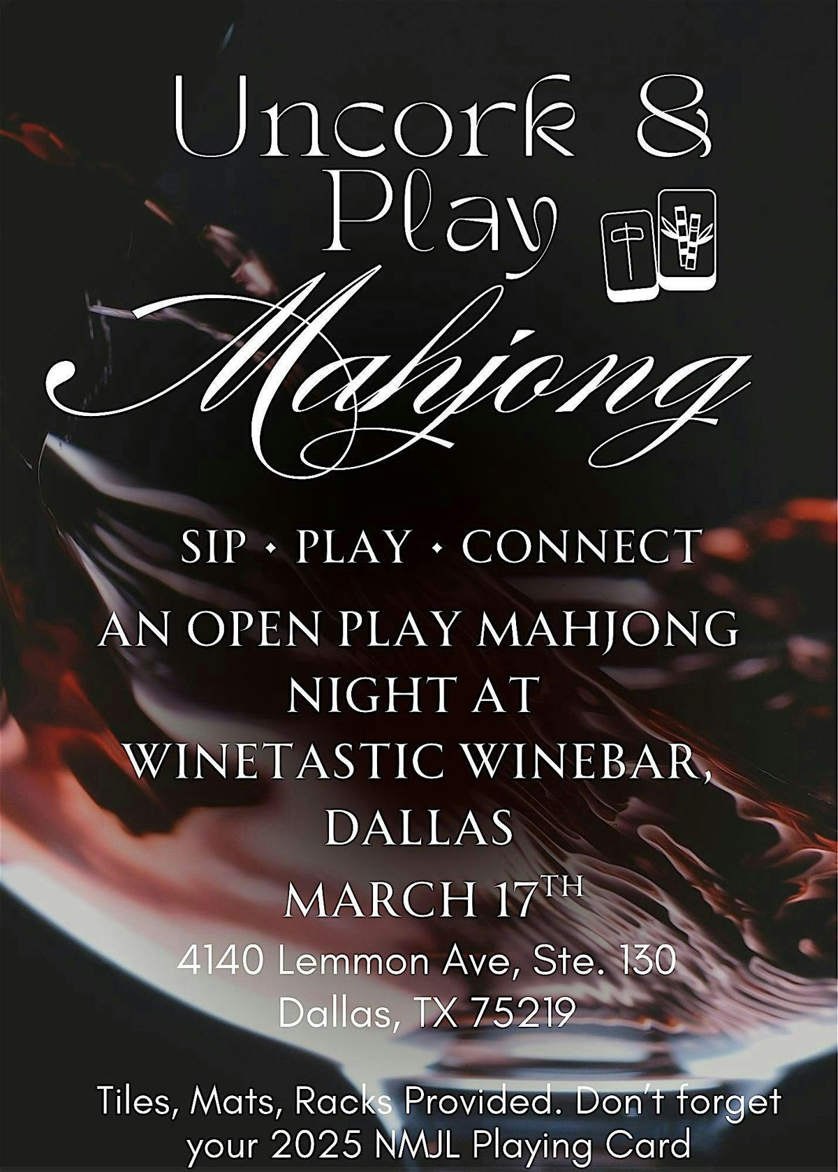 Limited seating — secure your place, uncork a glass, and experience an intimate evening of Mahjong and wine in Dallas.