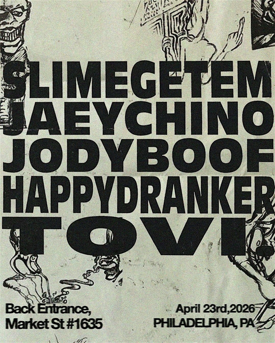 Join SlimeGetEm, Jaeychino, and ST6 JodyBoof in their first-ever Philadelphia shows - alongside local talents Happydranker and Tovi.