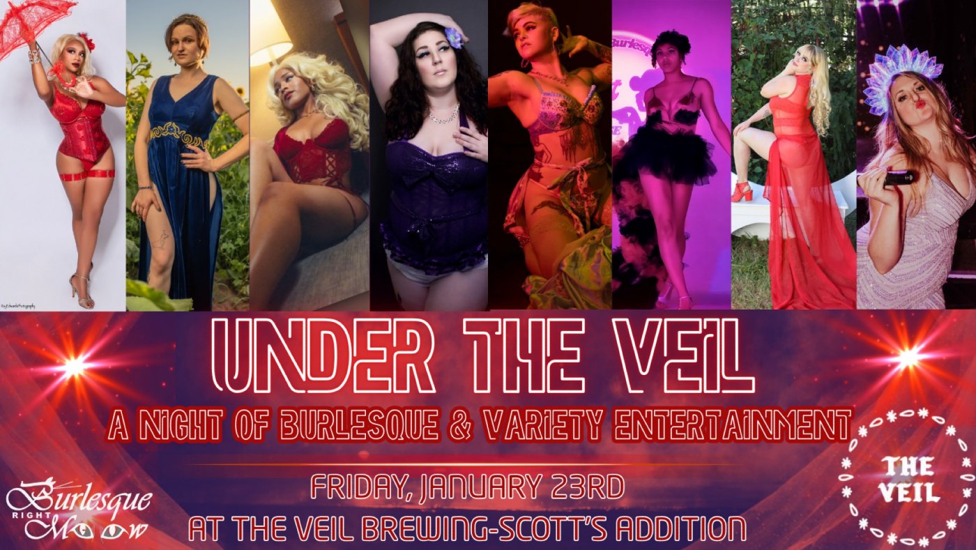 Step Under The Veil with Burlesque Right Meow for a high-energy night of burlesque and variety at The Veil Brewing. This immersive, in-the-round floor show brings performers and audience together in an electrifying evening filled with movement, spectacle, and playful surprise. With no traditional stage and no distance between you and the performers, the action unfolds all around you. Join us for our very first show at The Veil Brewing and experience an up-close night of dazzling entertainment.
