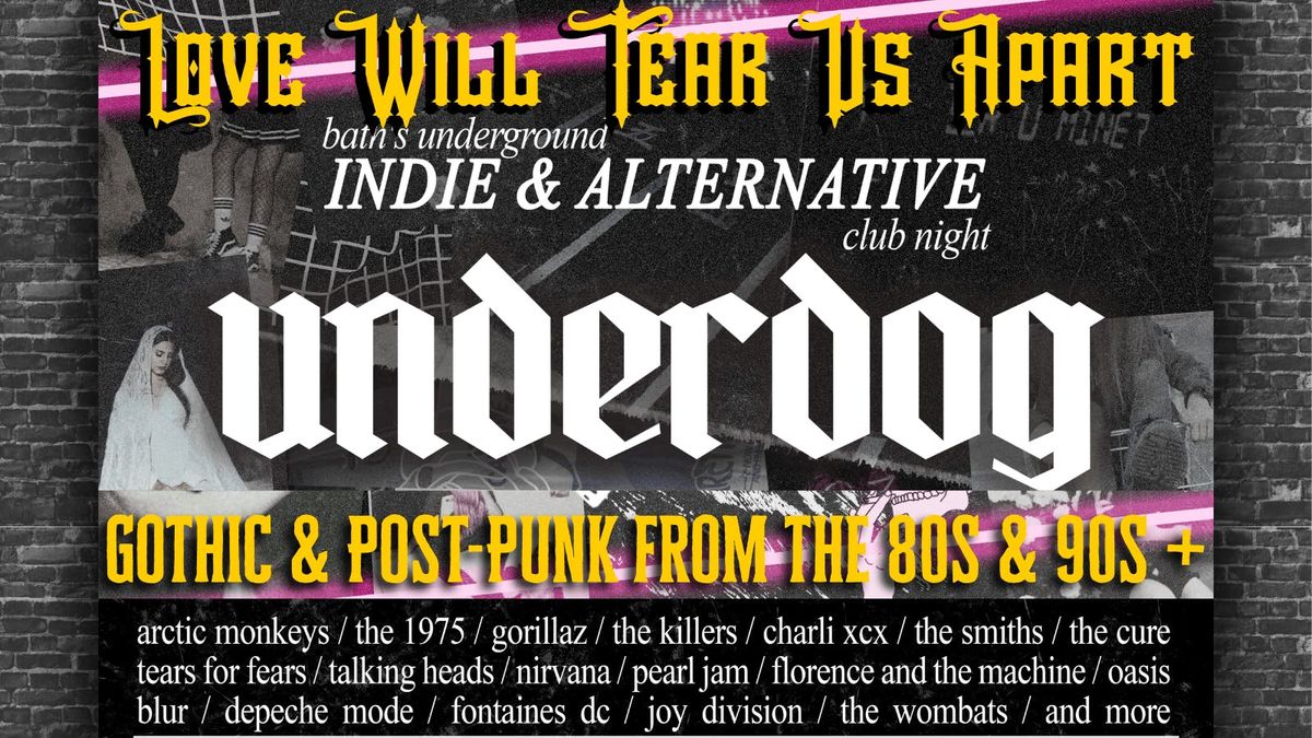 UNDERDOG: LOVE WILL TEAR US APART INDIE & ALTERNATIVE PARTYBATH'S NUMBER 1 INDIE & ALTERNATIVE NIGHT IS BACK FOR MARCH AFTER THREE SELL OUT NIGHTS!