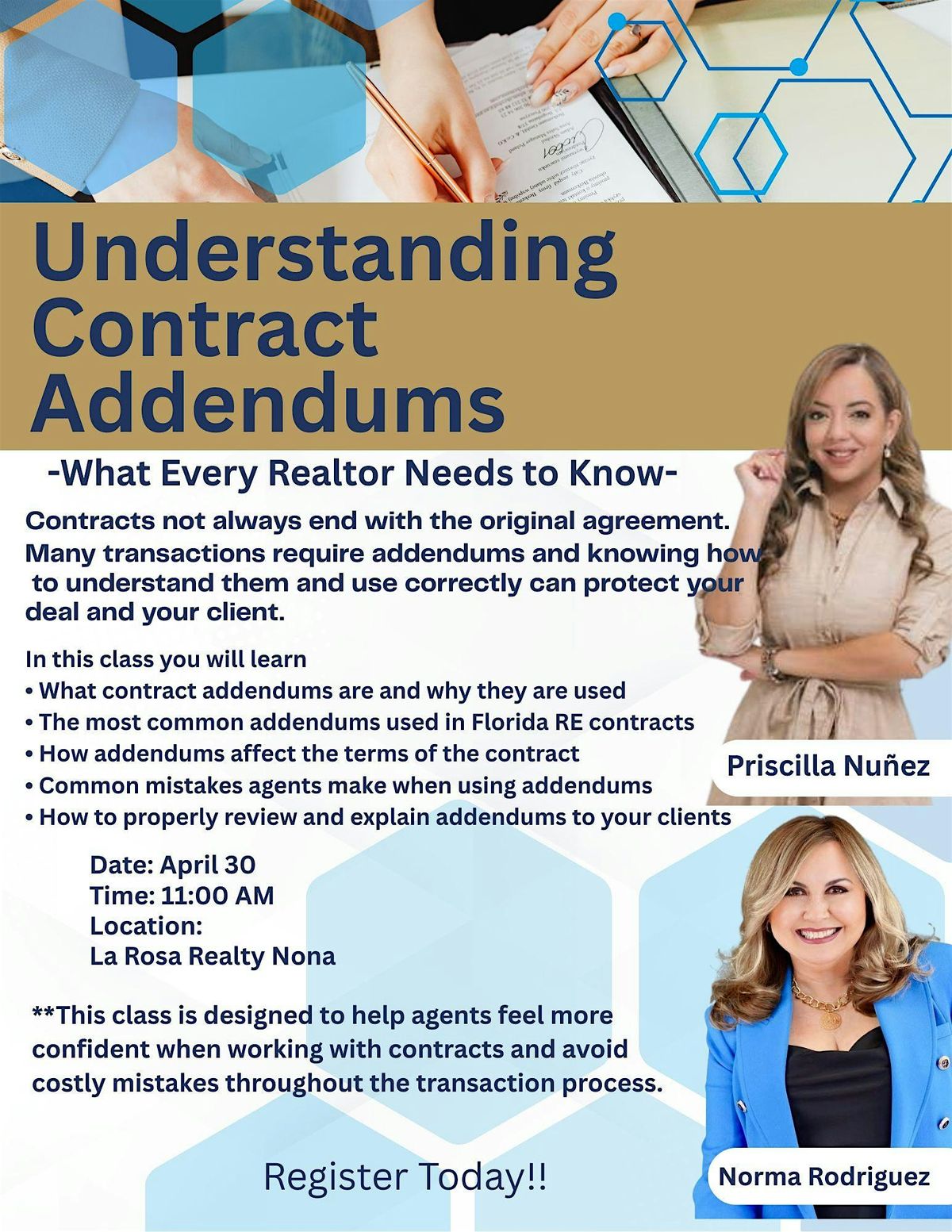 This class is designed to help agents feel more confident when working with contracts and avoid costly mistakes.
