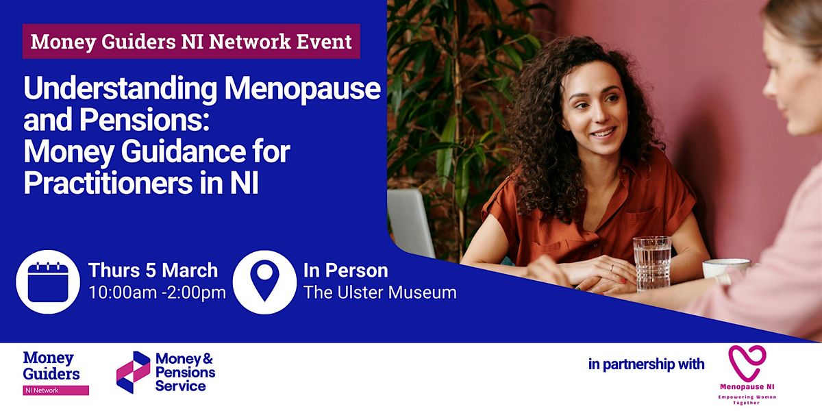 The Money Guiders Northern Ireland Network is hosting an in‑person event on Wednesday 5 March in the Ulster Museum, Belfast, bringing together Menopause NI and a Pensions Specialist from the Money and Pensions Service. Taking place just ahead of International Women’s Day (8 March), this session will explore two issues that have a profound impact on women’s financial wellbeing: menopause and pensions.