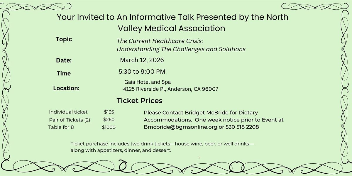 Join a Panel of Local Physicians for a discussion on the Current Healthcare Crisis and Practical Solutions. Attendees Are Encouraged to Ask