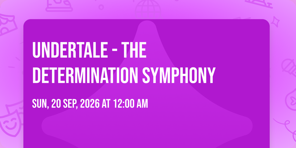 ๐ Location: 42.3503, -71.065๐ Step into a world of wonder at Undertale - The Determination Symphony, where extraordinary moments await! ๐๏ธ Located at Boch Center Wang Theatre in dynamic Boston, MA, this event will become the talk of the town. ๐ Join us on September 20th, 2026 at 12:00 AM for a celebration that defies the ordinary. โจ This curated experience brings together the best of entertainment, culture, and community spirit. Every detail has been thoughtfully planned to ensure an unforgettable experience for all our guests. ๐ฏ Take advantage of this opportunity to be part of something special. ๐ Early registration is recommended as space is limited!