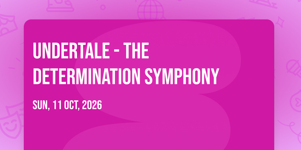 π Location: 49.2804, -123.113π Welcome to Undertale - The Determination Symphony, where dreams come alive and possibilities are endless! ποΈ Join us at Queen Elizabeth Theatre - Vancouver in the heart of Vancouver, BC for an event that defies expectations. π On October 11th, 2026 at 03:00 AM, be part of something truly extraordinary as we bring together innovation, entertainment, and pure magic. β¨ Every aspect has been carefully designed to ensure an unforgettable experience for all our guests. Whether you're seeking adventure, inspiration, or simply a break from the ordinary, this event promises to deliver beyond your wildest dreams. π Prepare for a journey into the extraordinary!