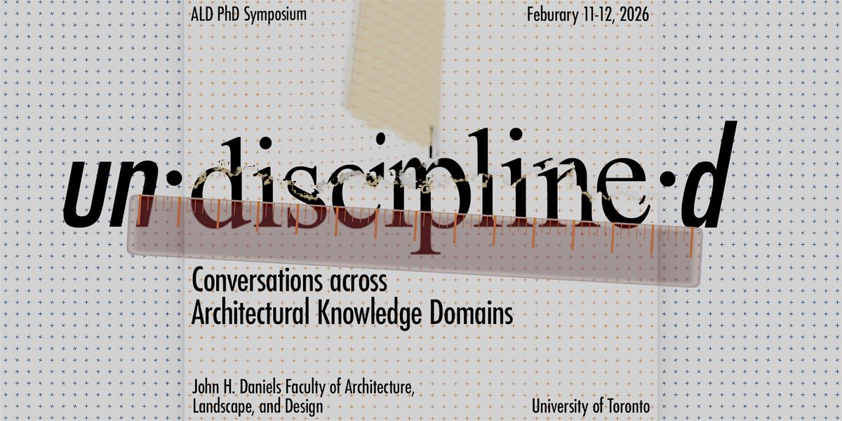 On February 11 & 12, 2026, PhD students and faculty will gather at the University of Toronto’s Daniels Faculty of Architecture, Landscape, and Design to examine the theme of interdisciplinarity in our school. Focusing both inward and between disciplines, we challenge what it means to traverse the traditional boundaries of our faculty’s domains of knowledge production. To achieve this, the symposium proposes an introspective approach, beginning with the multiple subdomains that are awkwardly or tenuously grouped under the PhD program of our own faculty.