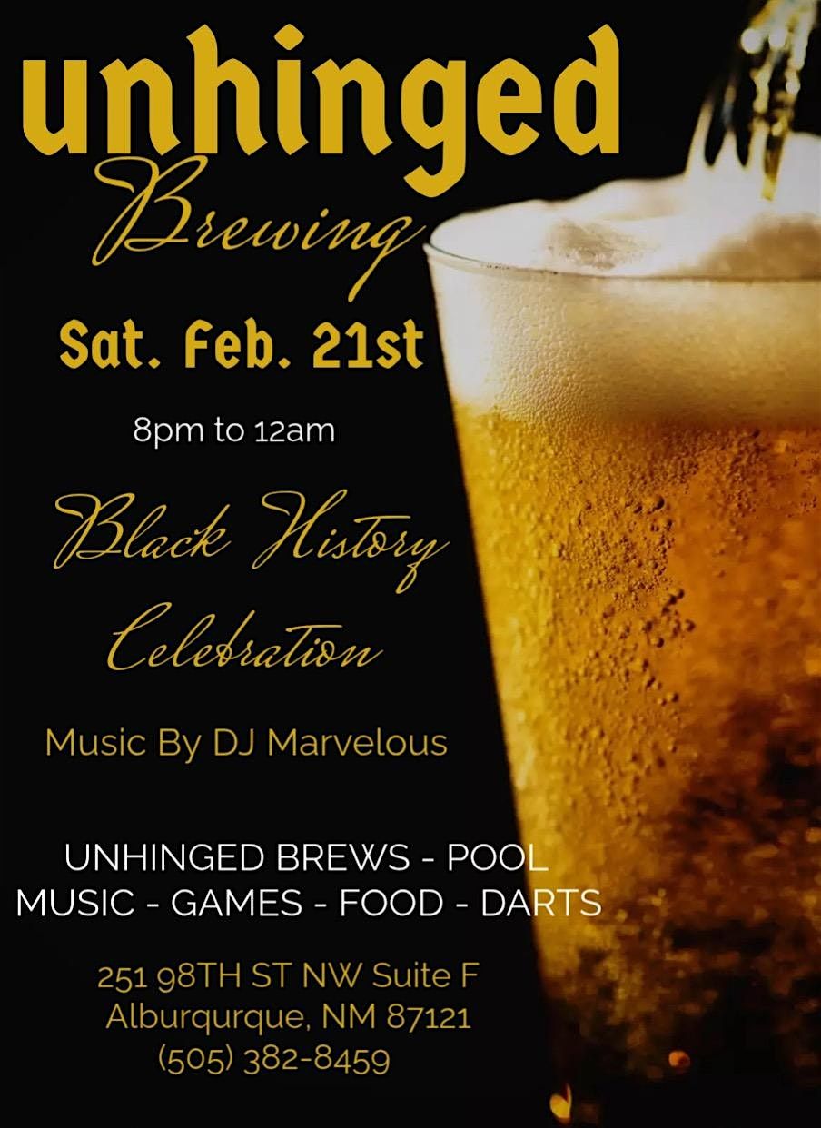 Black History Celebration @ Unhinged Brewing Company Music By Dj Marvelous Hip- Hop R&B Soul