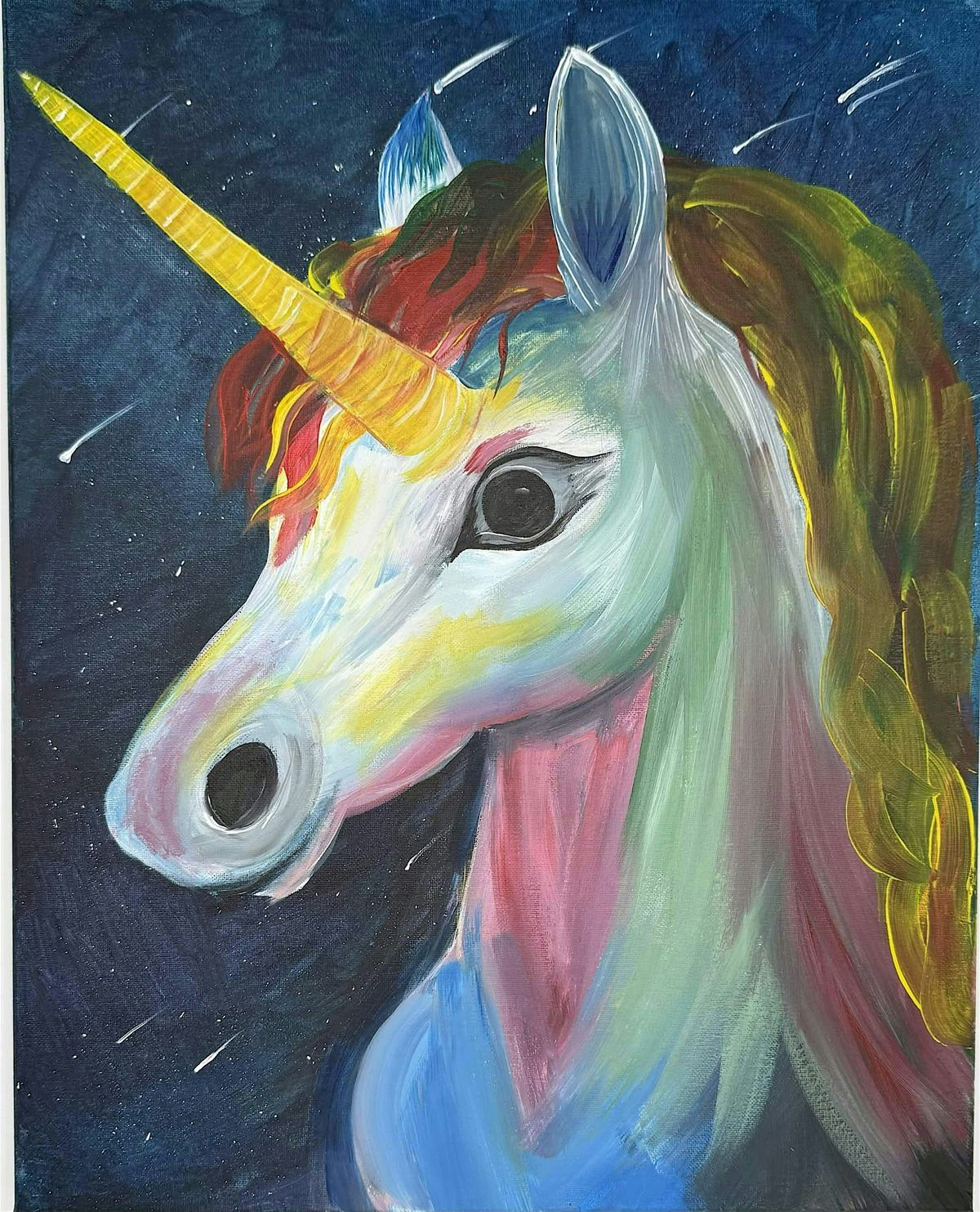 The talented instructor Becky Brennan, owner of Re-Vision Art by B, will guide you every step of the way to bring your sparkle Unicorn to life on a 16x20 in canvas.