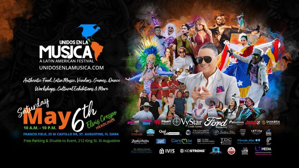 Get ready for Unidos en la Musica: A Latin America for a day filled with beautiful music, culture, and dance ... on May 6th, 2023 Latin America is coming back to St Augustine!! Somos Latinos!! Free Parking and Shuttle from 212 King, St Augustine 32084 starting at 11:30am