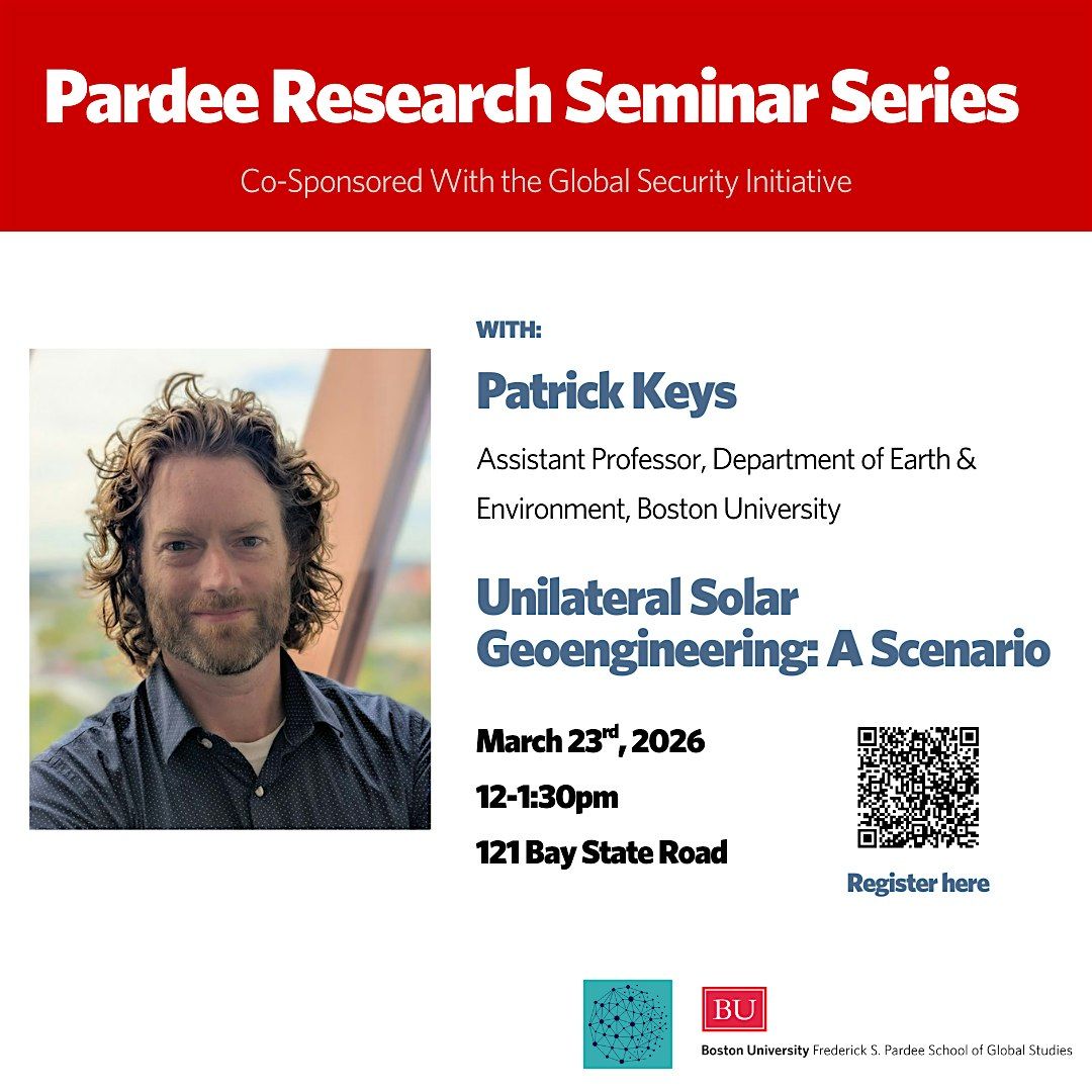 Dr. Patrick (Pat) Keys is an Assistant Professor in the Department of Earth & Environment, at Boston University. He is also a Faculty Fellow with Computing & Data Sciences. His overarching aim is to explore how society will navigate climate and societal turbulence toward a sustainable and just future. Prior to joining Boston University, Pat served as an Assistant Professor in the Department of Atmospheric Science at Colorado State University. Previously, Pat founded an environmental consultancy that worked with local and international partners examining food security in the UAE, drought and conflict in sub-Saharan Africa, and climate change resilience in Vietnam.