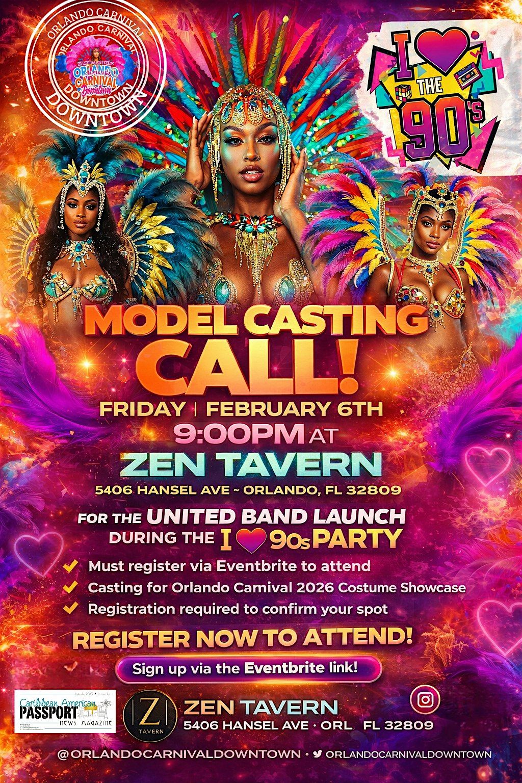 This casting is for our Orlando Carnival Downtown 2026 United Band Launch & Costume Showcase, and we’re looking for confident, high-energy models to represent the beauty, culture, and excitement of Carnival.