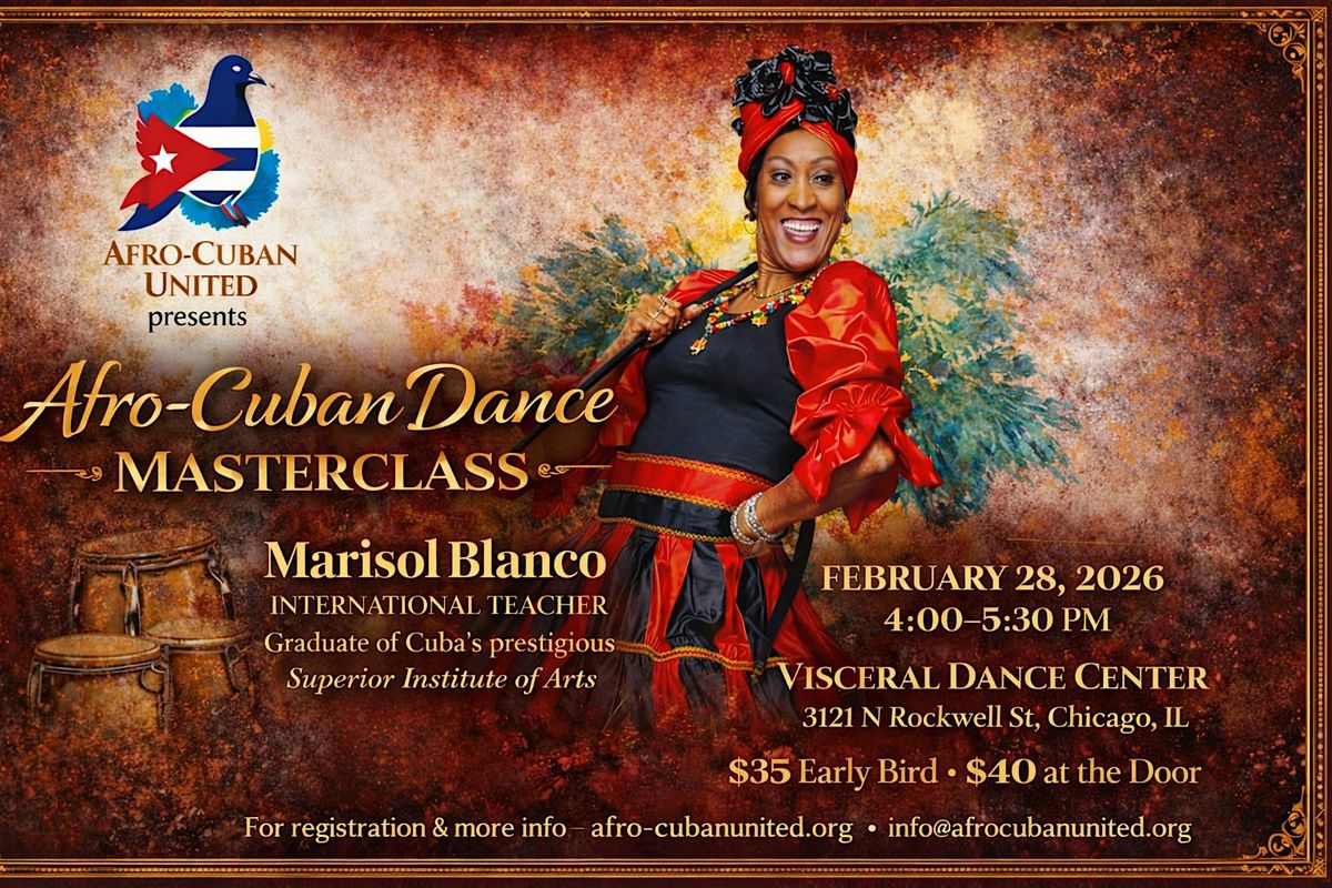 Afro-Cuban United is bringing Marisol Blanco all the way from Miami for an Afro-Cuban Dance Masterclass.