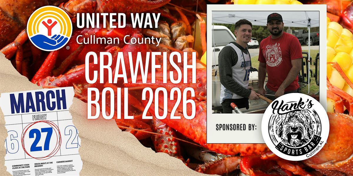 The United Way of Cullman County Young Professionals are proud to announce our Annual Crawfish Boil, hosted at and sponsored by Hank’s Sports Bar & Rumors Deli on Friday, March 27!!