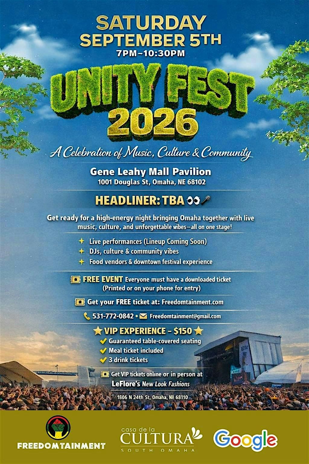 Unity Fest is a powerful, high-energy celebration that brings the Omaha community together through music, culture, and unity. Hosted by Freedomtainment, this free, family-friendly event creates a space where people from all backgrounds can connect, celebrate, and experience the best of the city in one unforgettable night.