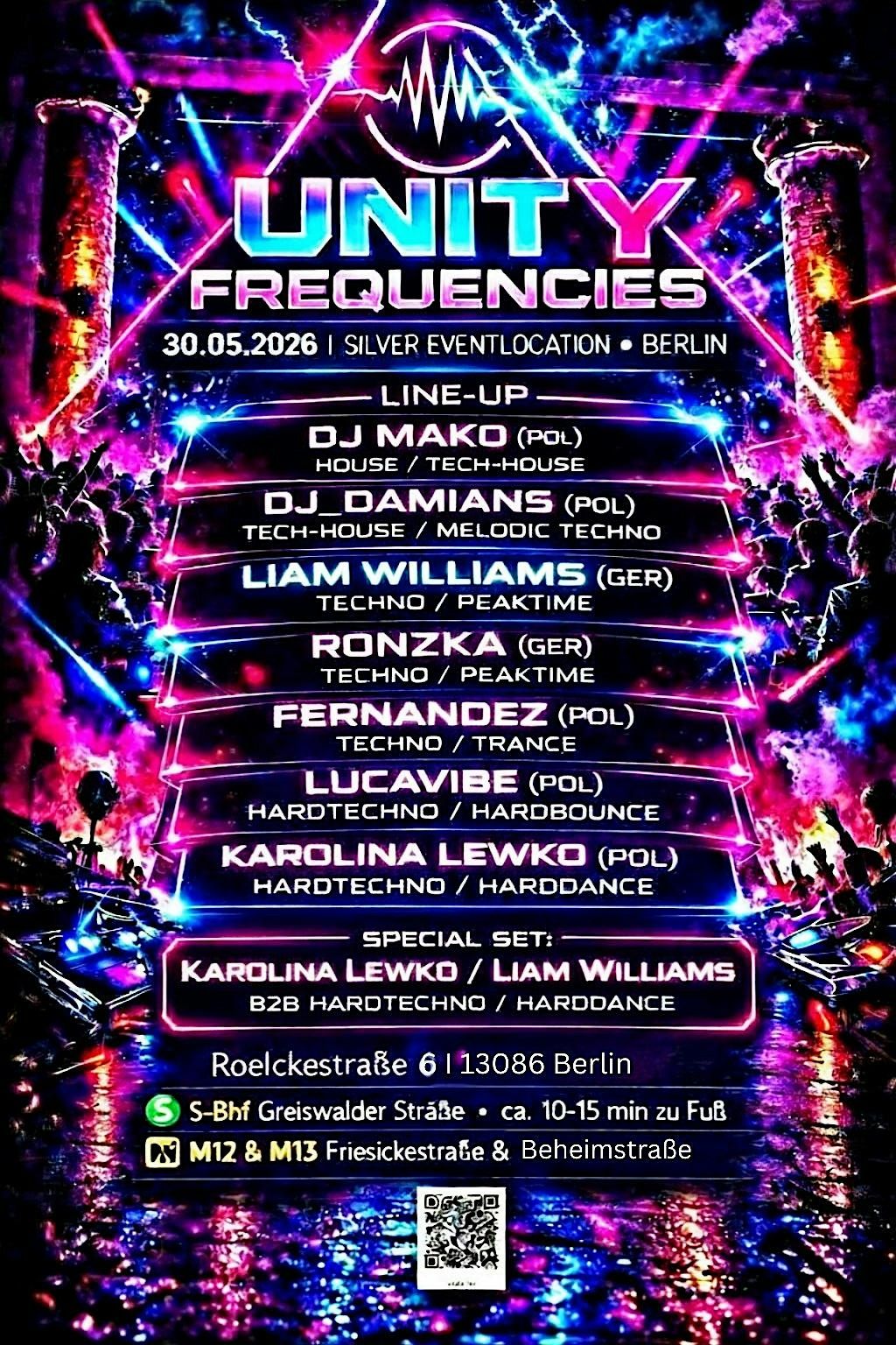 Unity Frequencies brings together a powerful lineup of international artists delivering Techno, Hardtechno & melodic elements on one floor.