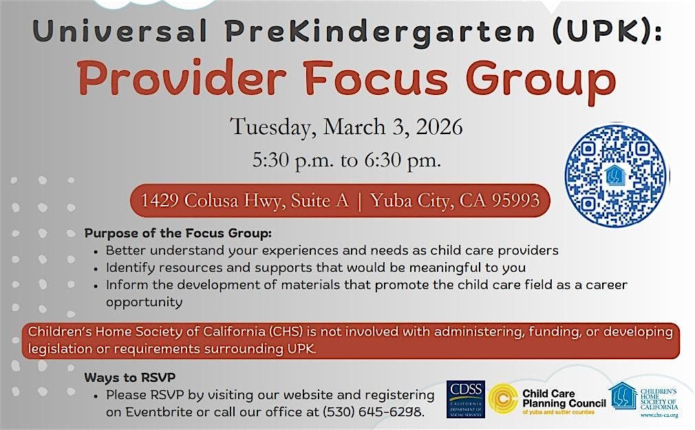 You are invited to participate in an upcoming in-person focus group designed specifically for early care and education providers. Your insights and ideas are incredibly valuable, and we would love to hear your perspective.