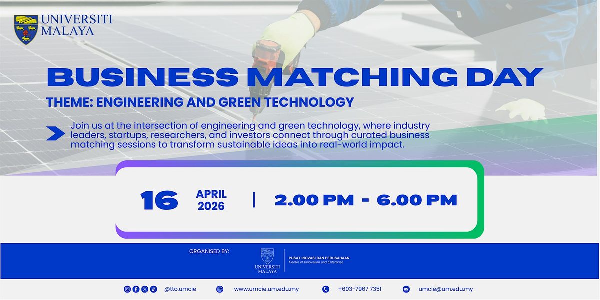 The UM Business Matching Day 2026, organised by the UM Centre of Innovation and Enterprise (UMCIE), is a curated engagement platform designed to connect Universiti Malaya’s innovation ecosystem with corporate leaders, strategic industry partners, venture capitalists, and investors.