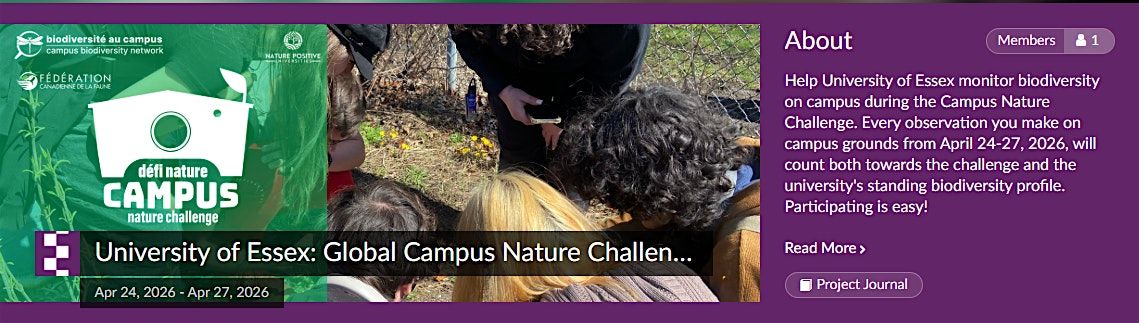 Participants will need to download the iNaturalist app in advance and join the University of Essex Campus Nature Challenge project to take part. Whether you’re new to nature spotting or already enthusiastic about wildlife, this is a great opportunity to connect with others, discover local species, and play a part in a global effort to document and protect nature.