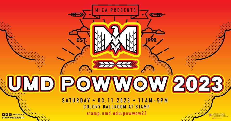 Grand Entry at 1:00PM. Sweetheart Special at 3:00PM.Join the Native American and Indigenous Student Union (NAISU) and Multicultural Involvement and Community Advocacy (MICA) as we revive our annual powwow on the University of Maryland Campus! There will be Native American dancing, drumming, and singing, as well as vendors selling their craft.