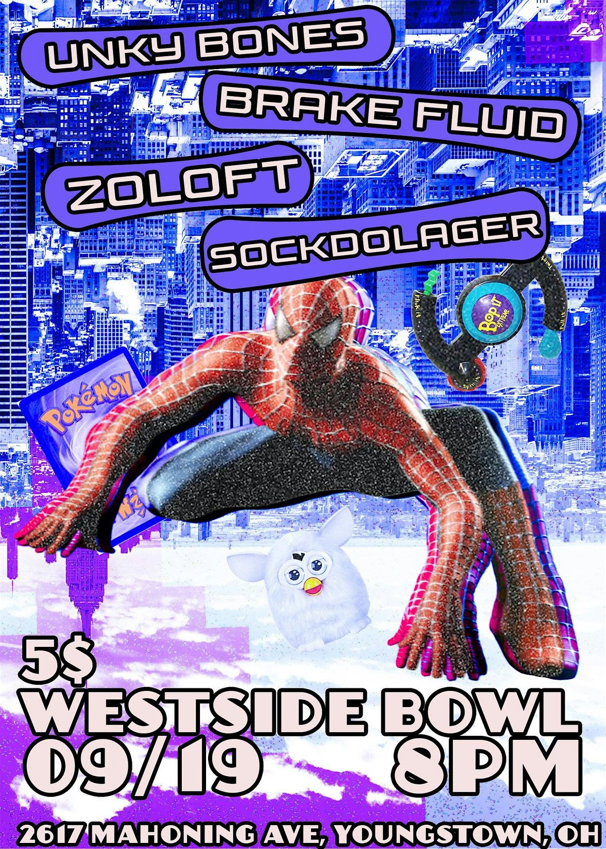 Who is Unky Bones? Find out with Brake Fluid, zoloft, and Sockdolager at the Westside Bowl!