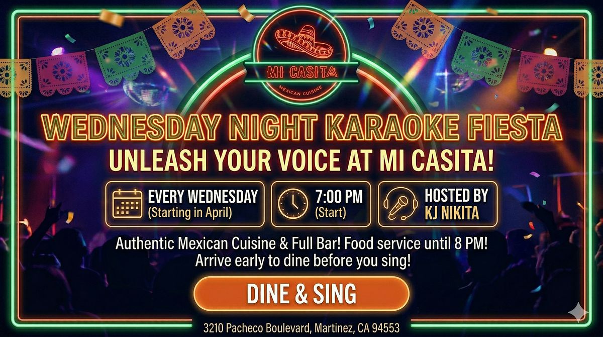 Are you ready to be a star? The lights are low, the neon is up, and the music is LOUD. It’s time to unleash your voice and join the fiesta at Mi Casita Mexican Cuisine.
