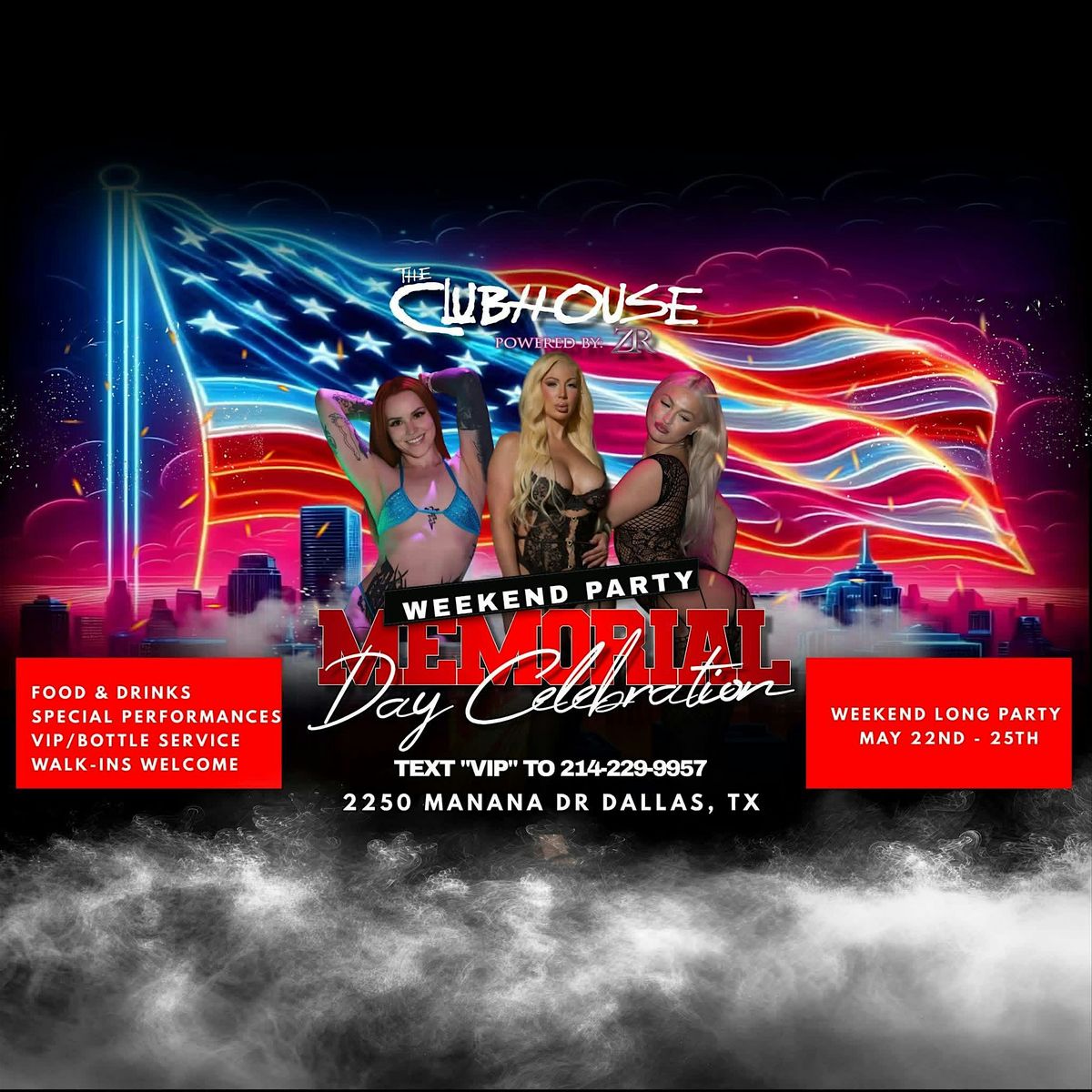 Memorial Day Weekend = FULL SEND VIP tables, bottle service & nonstop energy at The Clubhouse Dallas. May 22–24. Summer starts here.