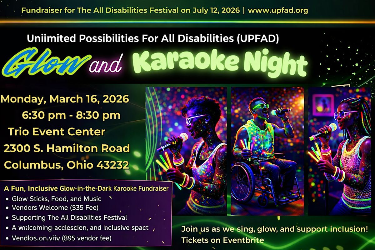 Join Unlimited Possibilities For All Disabilities (UPFAD) for an unforgettable Glow & Karaoke Night in celebration of National Developmental Disabilities Awareness Month!