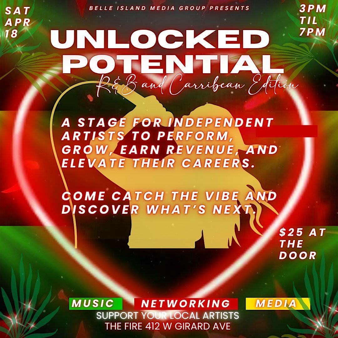 Live R&B & Caribbean vibes discover rising artists, connect, and experience culture, music, and energy at Unlocked Potential.