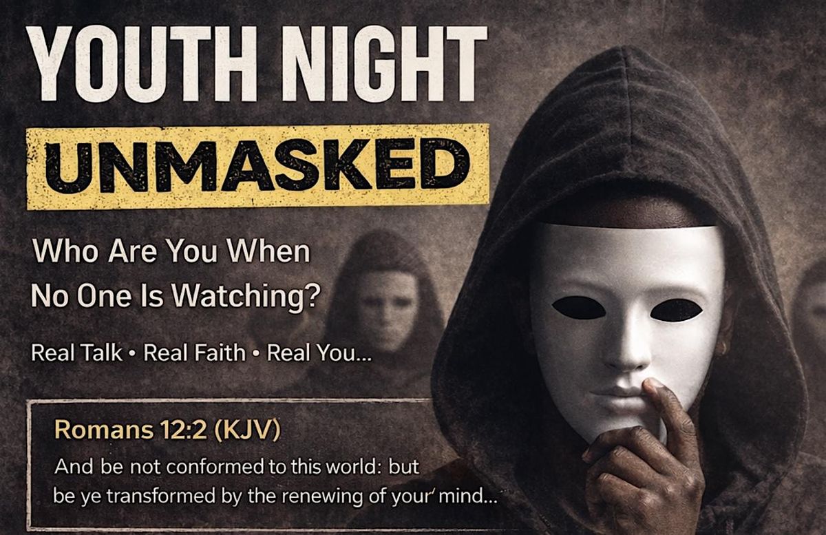 Join us for UNMASKED, an engaging and uplifting Youth and Young Adult Night designed to create a safe space for honest conversations about life, faith, identity, and purpose.