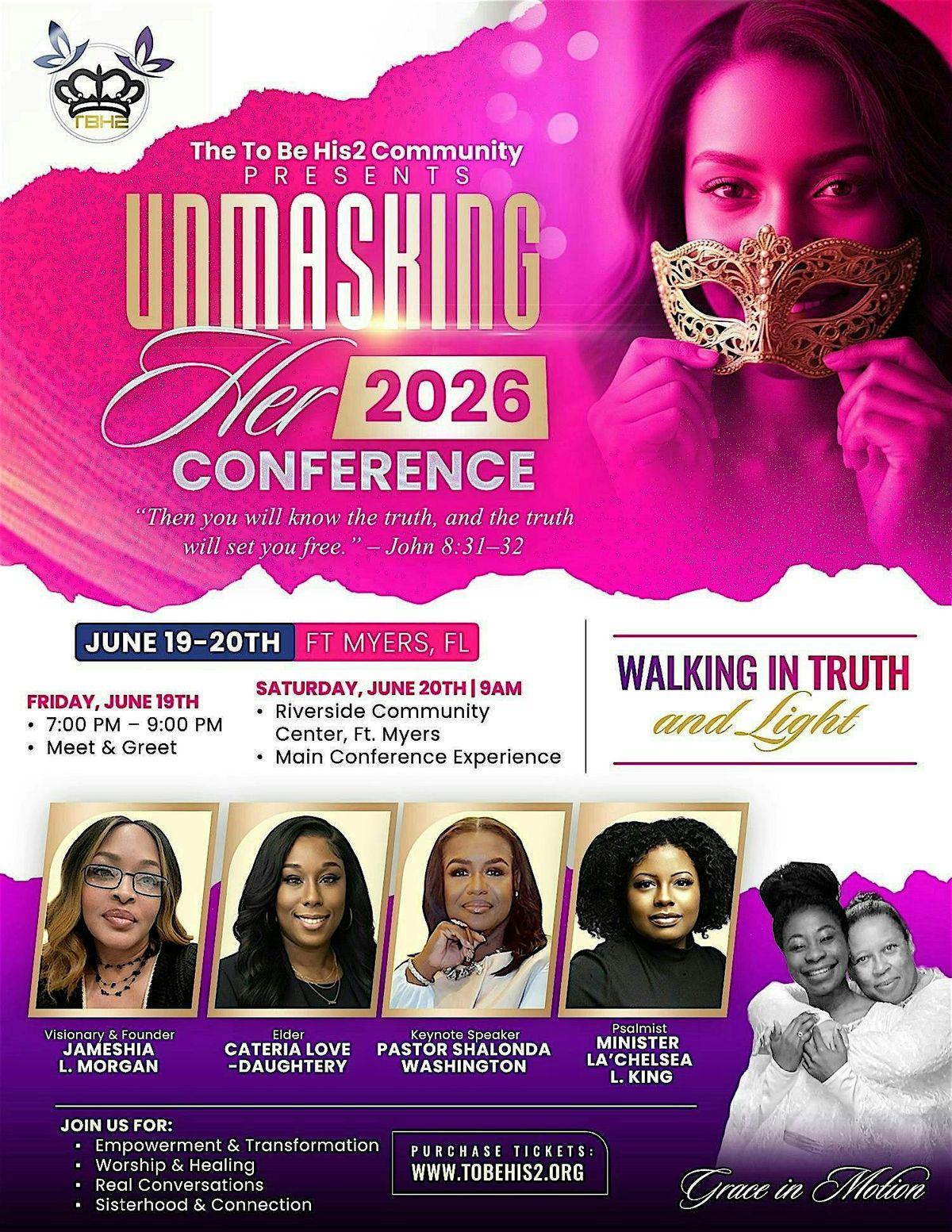 Join us at the Riverside Community Center on June 19, 2026 at 10:00 AM (Eastern Time) for Unmasking Her 2026! This in-person event is all about celebrating , empowerment, and connection. Join us, share experiences, and be part of twhat know will be truly transfornational! Don’t miss out on this awesome gathering in the heart of the beautiful city of Ft. Myers!